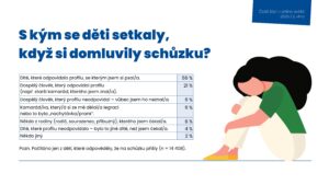 Ke sdílení údajů a fotografií se váže také posílání sexuálně laděných zpráv a setkání s osobou, se kterou se děti potkaly na internetu. Ke schůzce došlo u 14 408 dětí. V 6 % případů dorazil na schůzku dospělý člověk, který vůbec neodpovídal profilu.