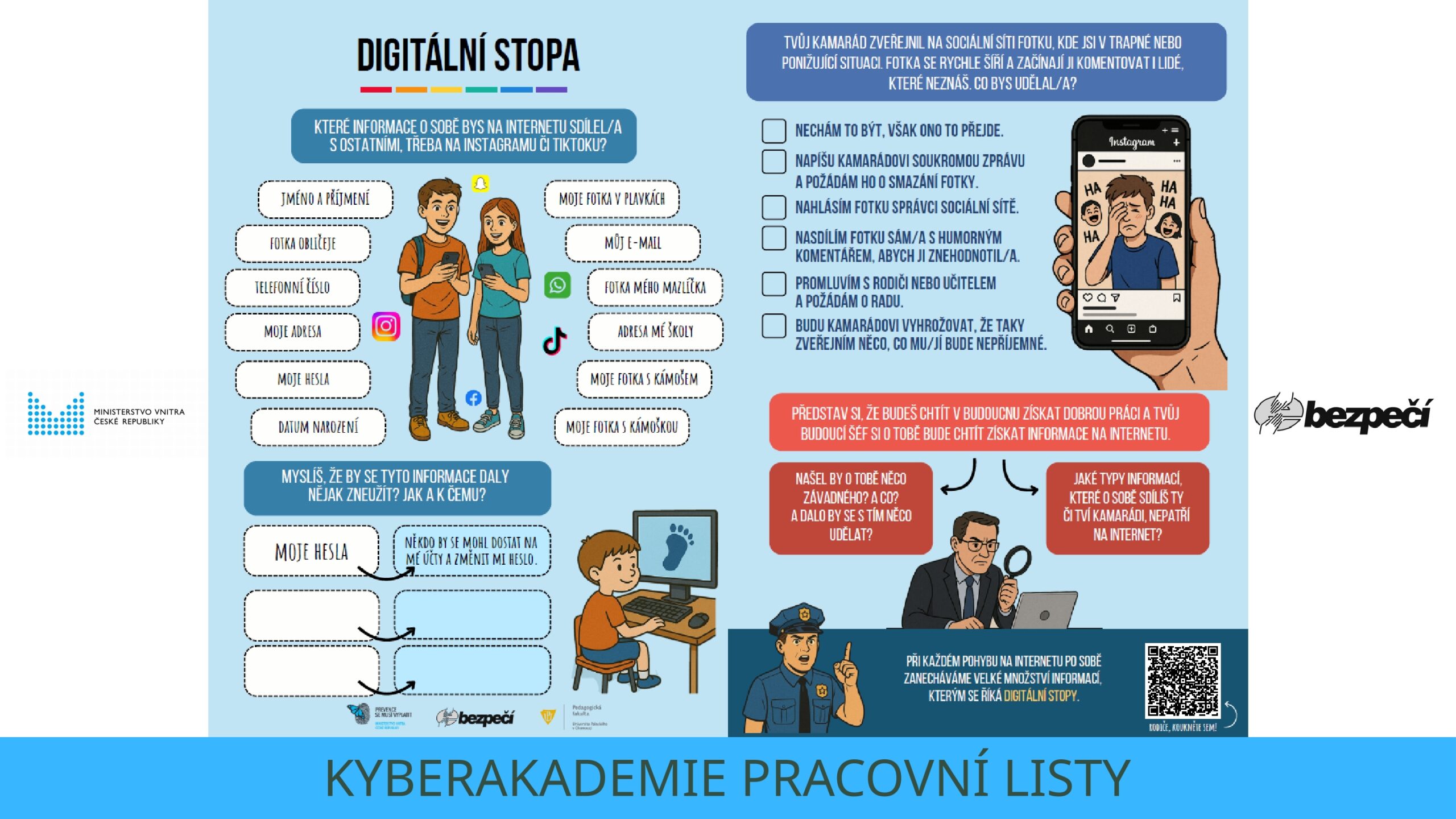 Druhé únorové úterý patří Dni bezpečnějšího internetu (Safer Internet Day), v roce 2026 připadl celosvětově tento den na 10. února. Bezpečnost v kyberprostoru není jistě záležitostí jen jednoho dne, osvětové akce probíhají v průběhu celého měsíce a upozorňují nás na každodenní realitu. Cílem je utvořit z internetu bezpečnější místo, a to hlavně pro děti a mladistvé. Loni byla tématem především digitální stopa, kterou dětem leckdy tvoří sami rodiče a blízcí ještě před narozením. Letos navázalo poněkud těžší téma intimity na internetu s heslem „To nevymažeš!“.
